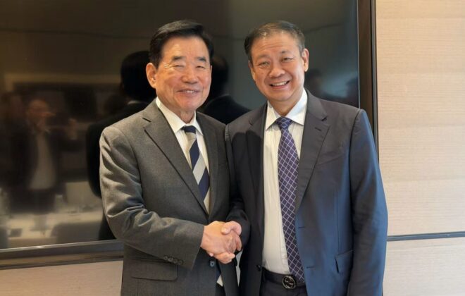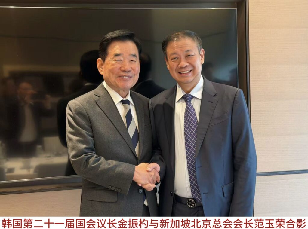 韩国国会议长禹元植会见新加坡北京总会创会会长范玉荣 共促新中韩三方友好合作