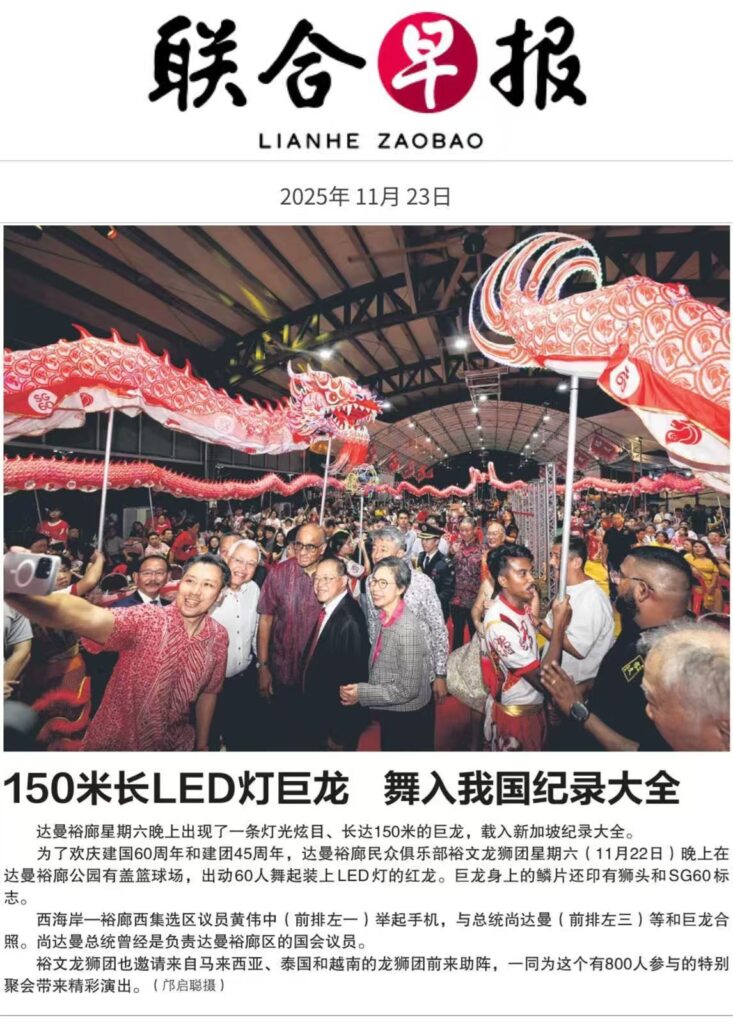 2025年11月22日晚,达曼裕廊公园内灯火辉煌,洋溢着浓厚的传统文化气息。为庆祝新加坡建国60周年及裕文龙狮团成立45周年,一场盛大的纪念活动在此隆重举行。新加坡北京总会创会会长范玉荣先生与董事胡进胜BBM应邀出席,与各界嘉宾、社区居民共同见证了这一文化盛事。