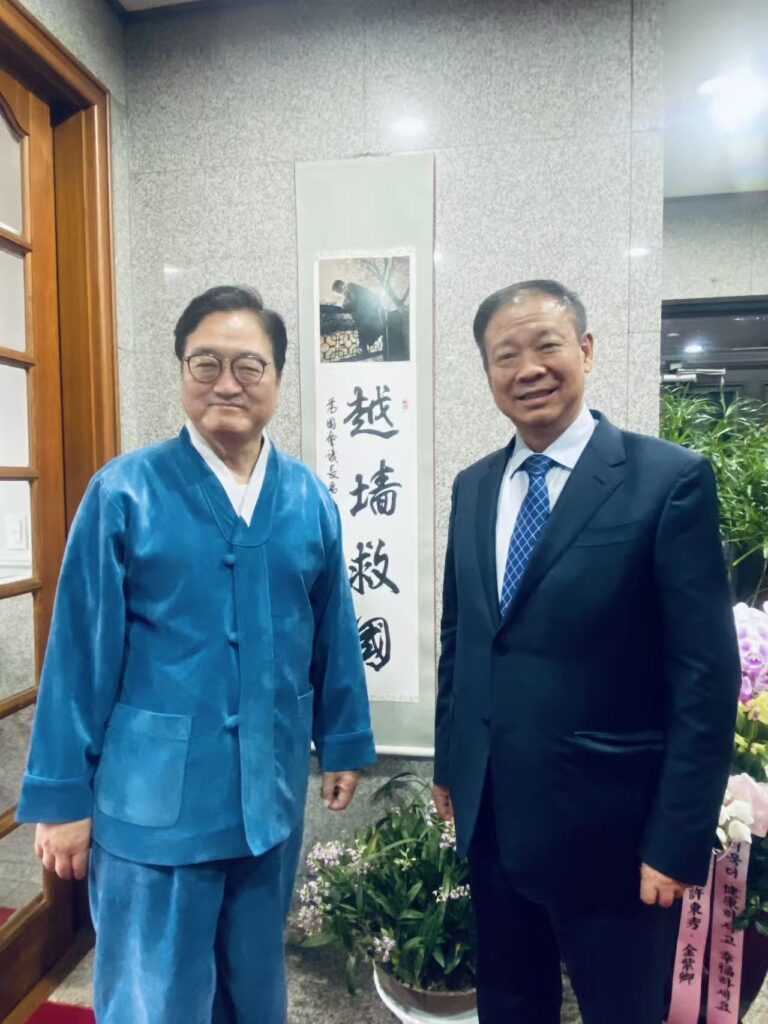 当晚,禹元植议长与夫人在议长官邸设宴款待范玉荣会长一行,双方在亲切友好的氛围中进一步沟通交流,增进了情谊与互信。
